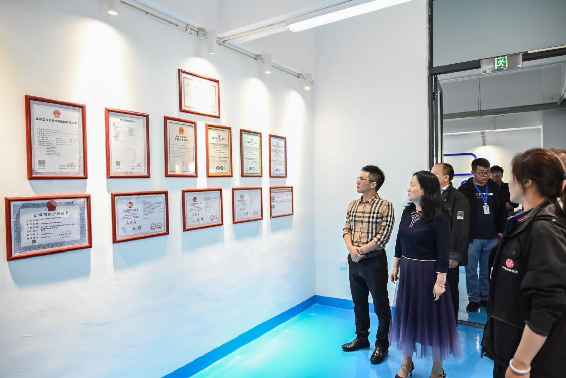 揭牌仪式结束后,与会人员到工程检测产学研综合实验基地现场参观、交流。我校相关职能部门和二级学院负责人,建设工程学院党政领导班子成员、相关教研室主任、专业带头人、部分教职工,中信检验检测(云南)集团有限公司技术总工、副总工、技术负责人、生产部经理等人共同参加了揭牌仪式。