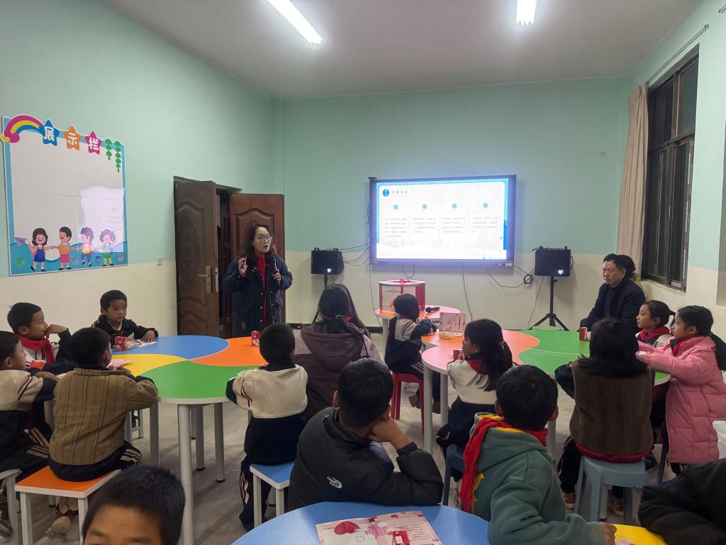 在绿春县戈奎中心小学,驻村工作队全体成员和老师们共同为留守儿童开展了关爱活动。活动现场,一张张“爱心妈妈”连心卡送到了孩子们手中,学校妇联、工会的老师们为孩子们讲解了“爱心妈妈”活动的内容和意义,卡片上写着“爱心妈妈”的联系方式和电话,孩子们自己写下姓名和联系电话。小小的卡片承载着爱意,搭建起互动的桥梁,做到暖心关爱零距离。“爱心妈妈”王丹老师给孩子们带来了一场生动的安全教育课,从交通安全、冬季防火、用电安全、防拐防失踪、性侵防范等多个方面提醒孩子们提高防范意识,让孩子们学会有效预防和处理生活中可能遇到的安全问题。