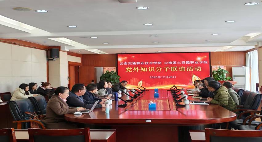 为进一步凝聚党外知识分子力量,搭建交流合作平台,增进情感联结,12月26日,学校各民主党派、无党派人士、党外知识分子和留学人员代表走进云南交通职业技术学院开展新春联谊活动。活动通过实地参观、座谈交流等形式,让代表们沉浸式感受校园发展活力,共话合作发展愿景。