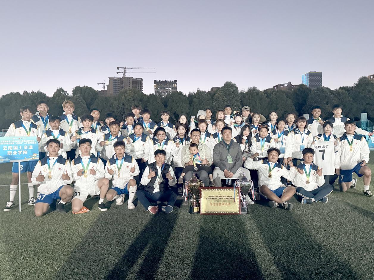 12月28日,云南省第十七届运动会大学组足球预选赛暨2025年云南省“勤锻炼”大学生足球比赛在昆明圆满落幕。经过激烈角逐,我校足球男子代表队登顶男子乙组冠军,女子代表队斩获女子乙组亚军。同时,女队凭借文明竞赛的良好风貌获评“道德风尚奖”,2名队员获“优秀运动员”称号,2名教师获评“优秀教练员”称号。