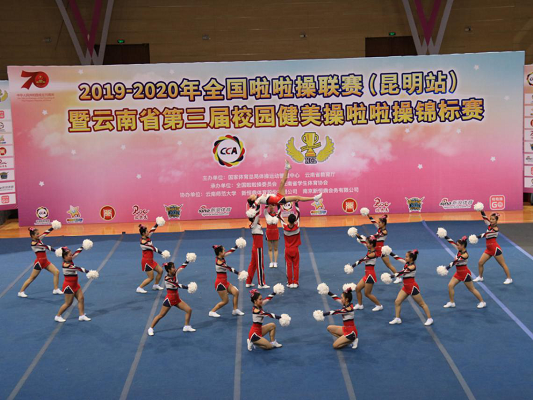 整齐划一的动作,默契十足的配合,近日,我校啦啦操队参加了2019至2020年全国啦啦操联赛昆明站既云南省第三届校园健美操啦啦操锦标赛,凭借出色的发挥获得公开青年丁组集体花球自选动作第二名、健美操比赛有氧五级第二名、公开青年丁组花球校园啦啦操示范套路(2016版) 第三名的好成绩。