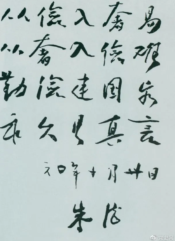 图为朱德手书《勤俭》(1960年10月30日)。