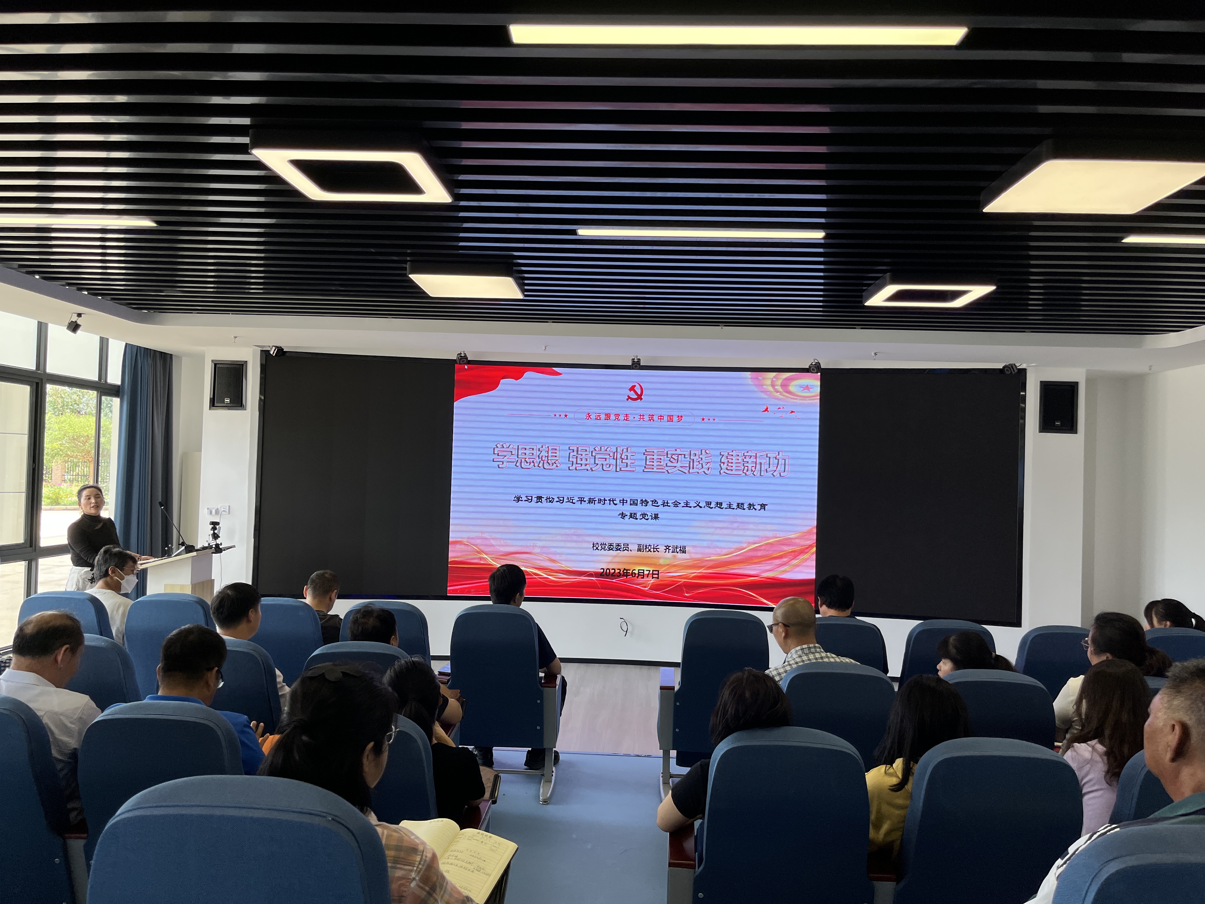 齐武福副校长首先介绍这次主题教育“学思想、强党性、重实践、建新功”的整体要求和坚持学思用贯通、知信行统一的根本任务,强调学思想是源头基础、强党性是关键所在、重实践是落脚点、建新功是根本标尺。深刻学习和把握习近平新时代中国特色社会主义思想的主要内容以及贯穿其中的世界观和方法论,党员们更加深刻认识和理解了习近平新时代中国特色社会主义思想的科学体系、丰富内涵、精髓要义和实践要求。真正实现通过主题教育把习近平新时代中国特色社会主义思想转化为坚定理想、锤炼党性和指导实践、推动工作的强大力量。