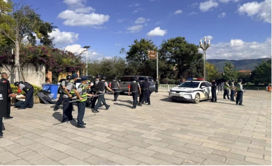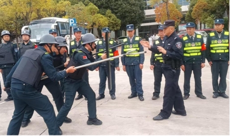 演练前,派出所民警首先向保安人员讲解了工作中遇到暴恐袭击时应注意的事项,就如何报警、如何控制暴恐人员等反恐知识进行详细讲解,现场组织安保人员学习了盾牌、钢叉、防刺服等反恐防暴器材的结构特点、使用方法和操作要领;练习了攻防基本技能;教授了突发事件的应急处置方法,现场还分组模拟演练了盾牌、钢叉等的使用时机和方法。