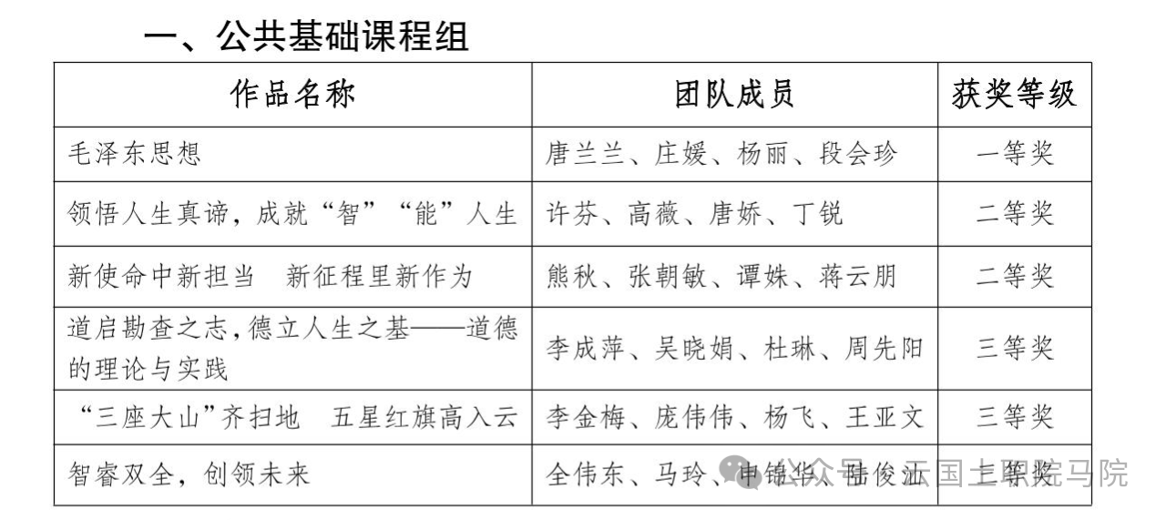 2025年,马院紧扣学校党委“一院一品牌”要求,开展马院品牌建设。依托品牌建设,党员教师在教学竞赛、课程建设、演讲比赛中勇当先锋,实现国家级赛道奖项零的突破。2025年马院在各类赛道上共获奖51人次,其中获国家级奖项3项:一等奖1项、三等奖1项、优秀奖1项;省厅级16项:一等奖2项、二等奖5项、三等奖4项,优秀教案1个。