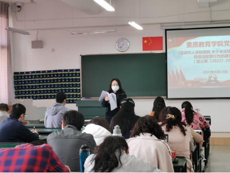 李霞书记首先介绍了昆明公安机关对上海来昆参加“专升本”考试、被检出阳性的艾某某开展受案调查的违反疫情防控的典型案例,对来(返)昆人员健康管理措施做了详细说明,通报了关于依法惩治妨碍疫情防控违法犯罪行为的通告,并要求全体教师要按照相关要求严格使用场所码,对近期学校下发关于疫情防控的文件做了学习。随后,李霞书记对学院参加学校举办的“喜迎二十大——国土师生说”理论宣讲比赛的准备情况做了介绍。会议还对近期的党务工作做了通报,对意识形态工作做了提醒。