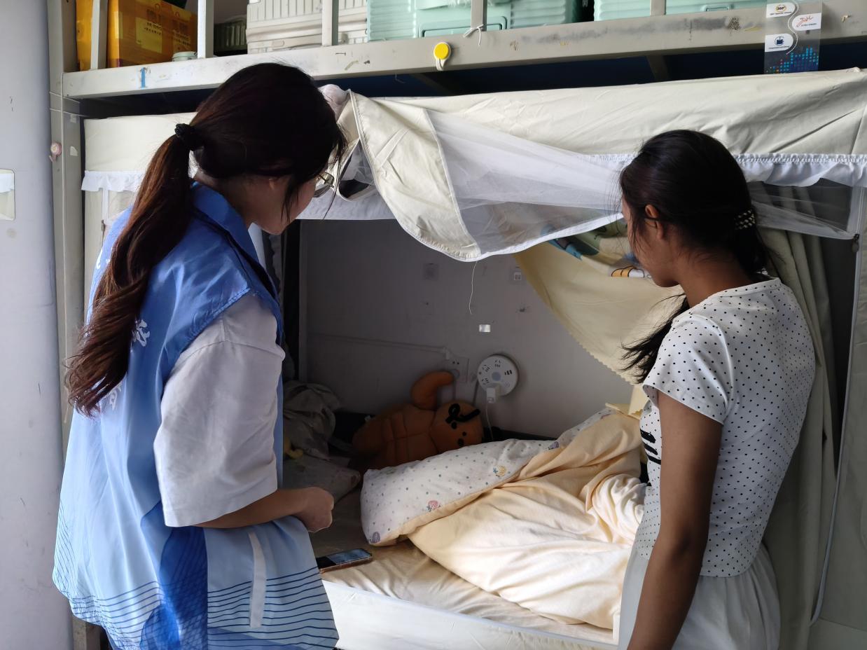 本次活动分为宿舍安全宣讲与环境清洁两大板块。三支志愿小队分别走进男女宿舍,排查插排电路隐患,帮助整理插排线、悬挂挂钩,规范用电环境;另一支小队对学院劳动实践教育区域及周边进行全面清洁。宣讲中,志愿者重点强调遵规守纪、防范电信诈骗、安全用电、第二课堂学分修习、及时就医与加强锻炼等注意事项,引导同学们筑牢安全意识。