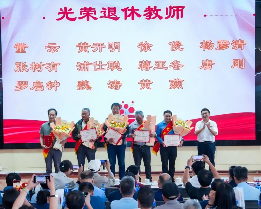 荣退教师代表徐俊发表感言时,深情回顾三十余年执教生涯中的育人故事,勉励青年教师坚守"为党育人、为国育才"的教育初心。