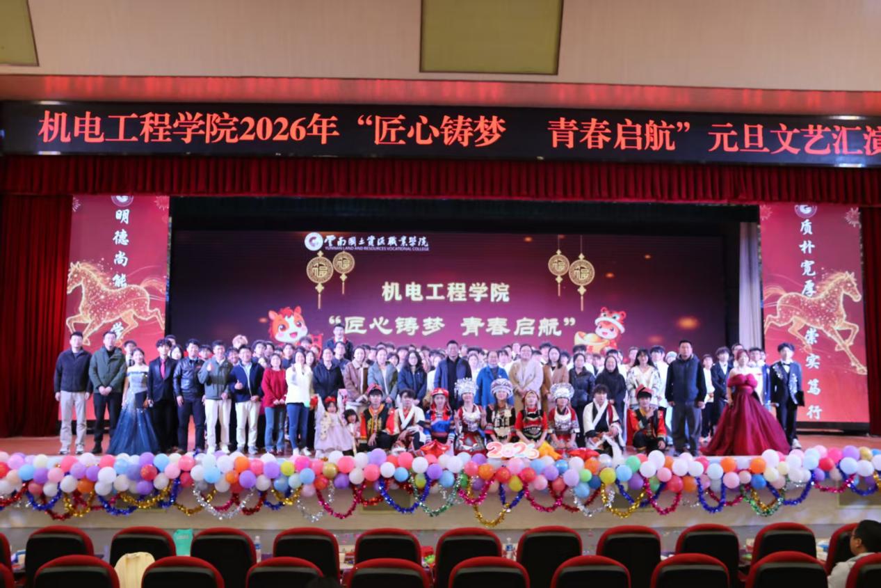 辞旧迎新启新程,青春聚力谱华章。12月26日18:00,机电工程学院2026年“匠心铸梦,青春启航”元旦文艺汇演在明礼堂隆重开演。本次晚会有幸邀请到了学校党委委员、马克思主义学院院长张延星,学生处处长李广涛,校团委副书记熊欢,校团委组织部部长庞梦飞,校团委宣传部部长王姚尧,组织部干部科科长马玲,机电工程学院党委领导班子成员应邀出席,兄弟学院团总支书记及教师组成专业评委团,学院25级辅导员班主任老师、学院专业课...