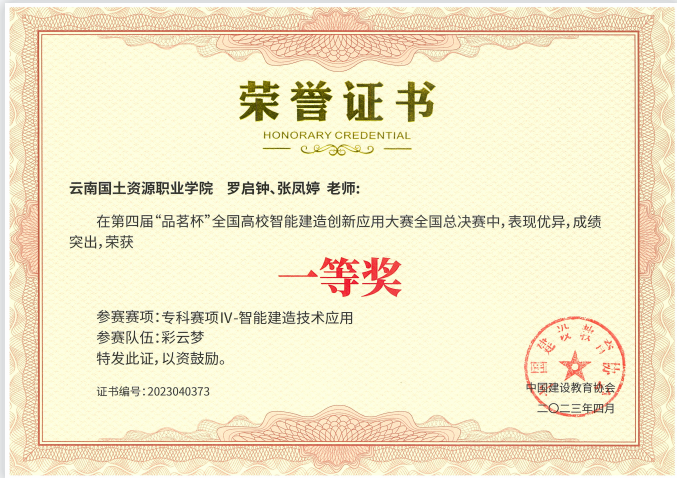 本团队坚守教学一线岗位,坚持立德树人思想,追求专业知识和技能精湛,努力当好学生成长路上引路人。2023年团队认真执行岗课证赛专业人才培养方案,在1+X取证和职业技能竞赛中取得优异成绩。2023年团队指导学生参加各级建筑信息模型职业技能比赛获得全国一等奖一项、国赛优秀组织奖一项;云南省赛二等奖4项、三等奖2项。