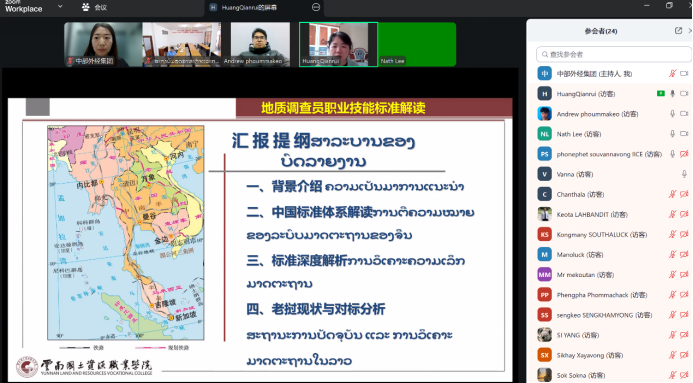 培训聚焦“教学理论与课程设计基础”模块,共包含22课时线上教学内容。课程体系涵盖《全球矿业发展趋势及地质调查员职业概况》《职业教育理念与地质调查员人才培养方案解读》《地质调查员培训课程大纲与标准解析》等主题。培训内容紧密结合老挝国情,强调“可操作、可转化、可落地”,注重案例教学与本土化适配,受到参训学员好评。