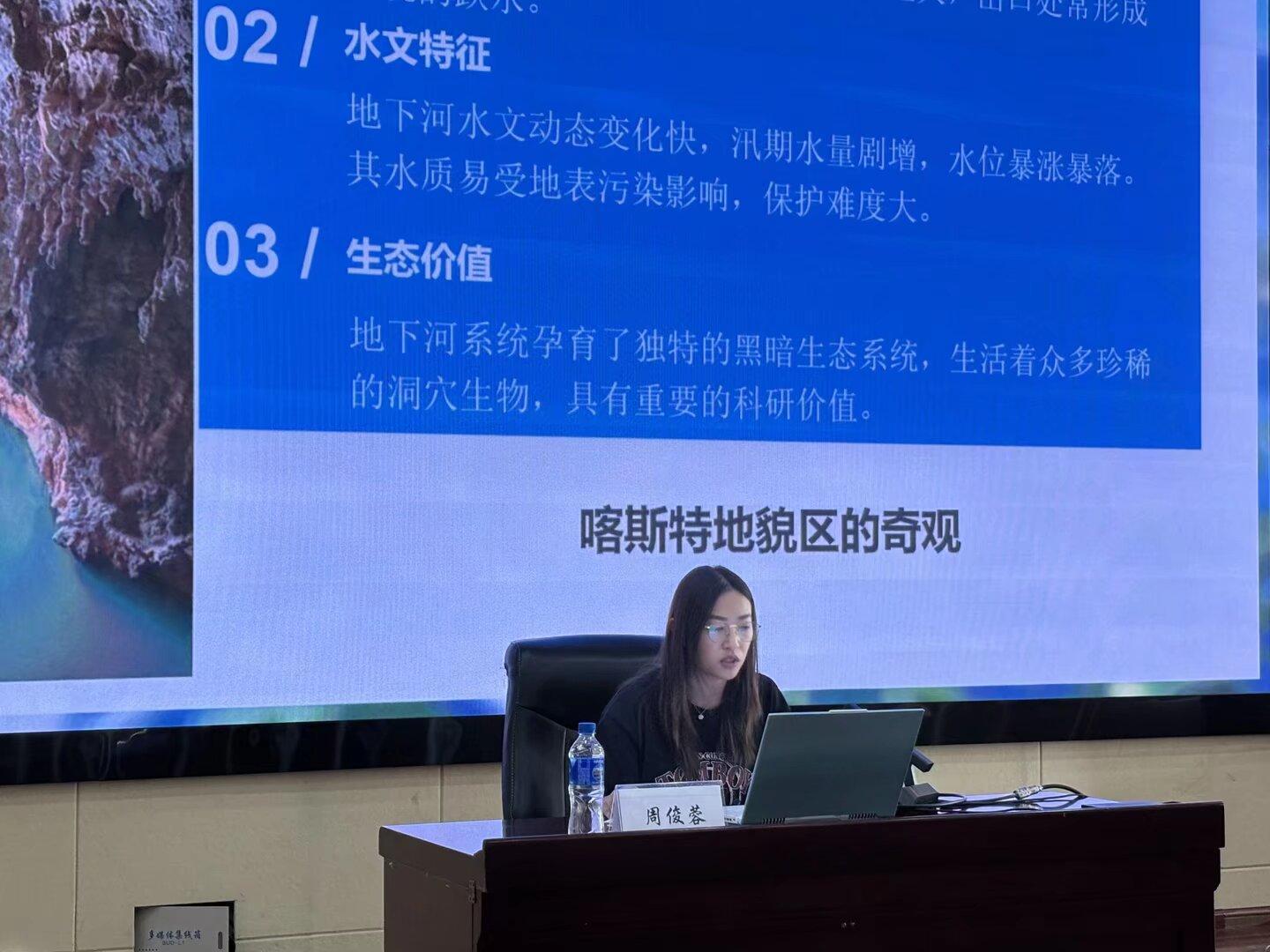 活动现场,周俊蓉以《云南高原的血脉——地下水》为题作科普讲座,系统介绍地下水基础知识、云南省地下水资源概况及保护要点。丁鸿羽以《从校园到职场》为题,围绕水工环专业发展、职业规划与就业准备作专题分享。互动交流环节,师生就地下水与日常生活、专业发展、地质灾害防治、升学就业选择等问题与专家深入交流。活动最后,全体师生参观地球日、地下水及地质灾害科普展板。