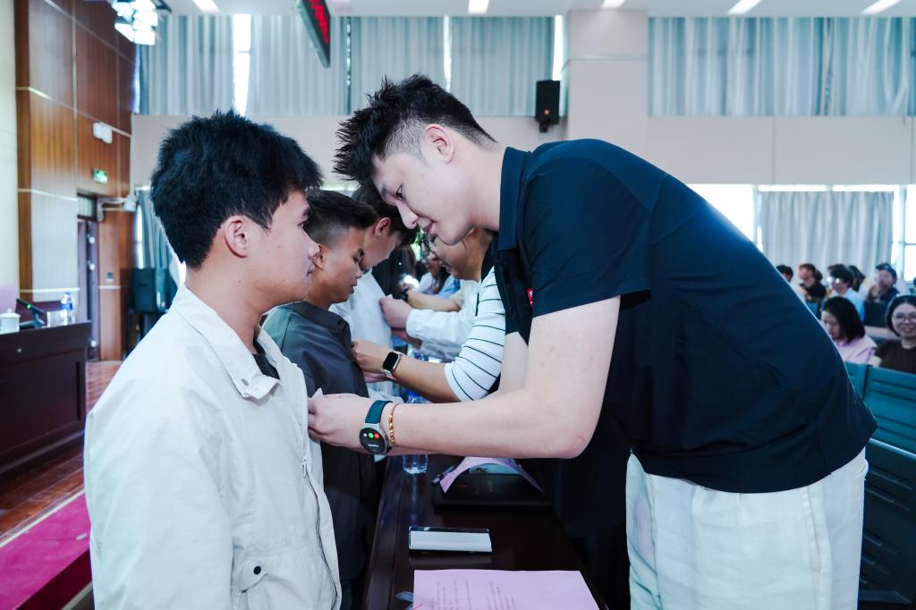随后,海之晨集团领导与校领导共同为留学生代表佩戴校徽,正式欢迎他们成为学校大家庭的一员,并寄予殷切祝福。