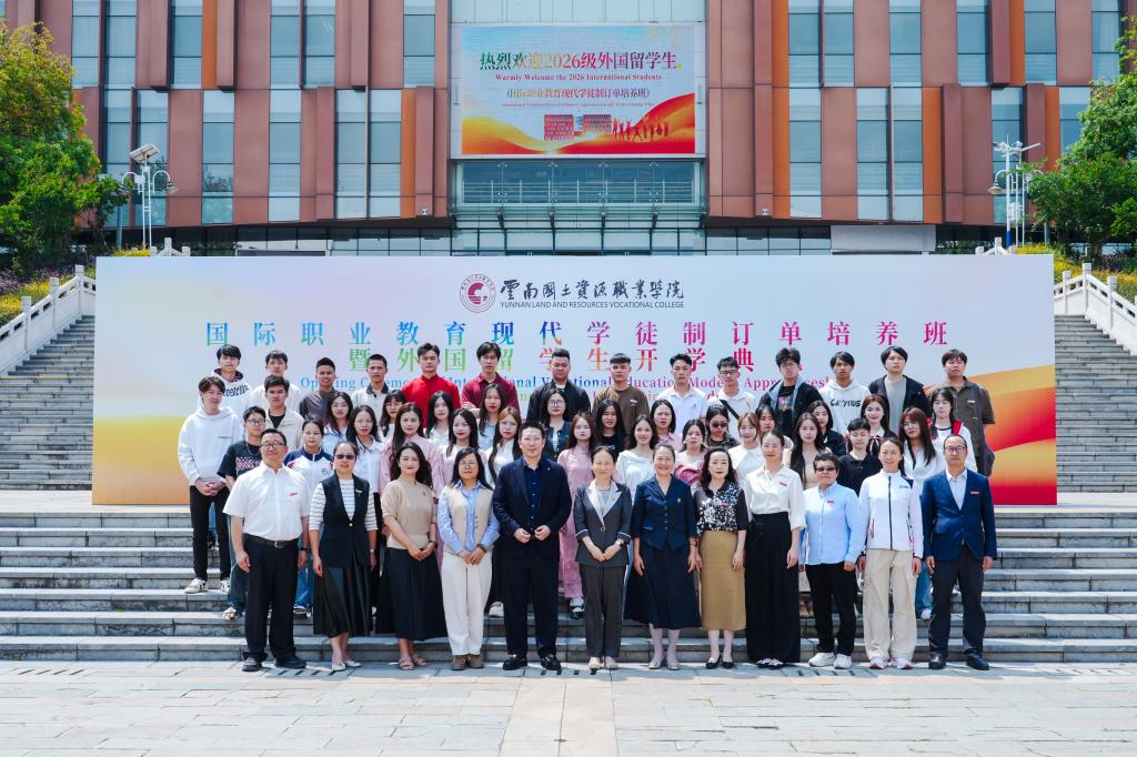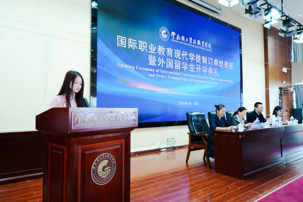 陈颖表示,学校作为云南省“双高”院校之一,一直努力推进国际化办学,取得了丰硕成果,为“留学中国·学在云南”贡献了国土力量。她指出,学校立足国土资源等特色专业优势,持续深化产教融合、积极推动职教出海,将行业标准与企业需求深度融入人才培养全过程,形成了校企协同育人的长效机制;同时,学校主动服务“一带一路”建设,通过技术技能培训、职业标准输出等多种形式,推动中国职教理念与标准走向海外。最后,她对外国留学生提出三点要求:一是珍惜时光,勤学善思,尽快融入新的学习与生活;二是尊重差异,包容互鉴,做中外文化交流的使者;三是心怀梦想,勇毅前行,将所学转化为服务本国建设与促进中外友好的实际行动。