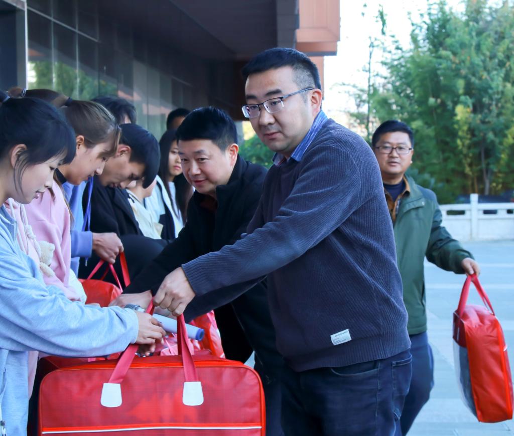 观山楼前,各学院辅导员组织学生按秩序排队等候。学生处副处长丁治祥代表学校对同学们的表达深切的关怀问候,反复叮咛,务必将毛毯发放落实到每一位受助学生手中。