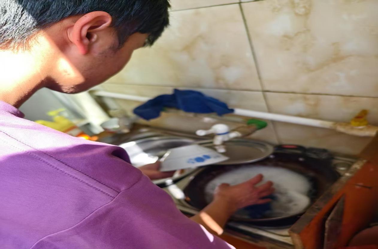 2月,我参与为期一周的家庭劳动社会实践,在厨房、庭院完成多项日常劳作。每日主动清扫庭院与室内卫生,餐后细致清洗餐具、整理灶台,系统学习食材处理与基础烹饪技巧,还负责庭院家禽的定时喂食。这次实践让我真切体会到日常家务的琐碎与辛劳,深刻理解父母操持家庭的不易。简单的家务事也需耐心与细致,不仅锻炼了我的动手能力、培养了责任意识,更让我懂得珍惜整洁舒适的生活环境。
