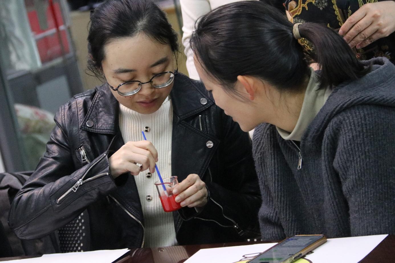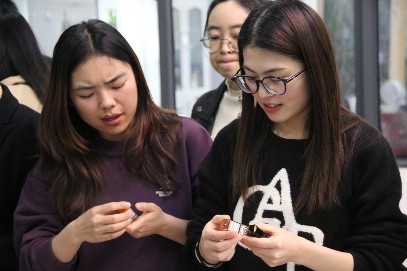 随后进行的精油口红DIY将气氛推向高潮。在指导老师的讲解下,大家兴致勃勃地挑选色粉、调配精油、灌装定型,亲手制作专属口红。看着一支支独一无二的作品脱模成型,现场洋溢着欢声笑语,大家纷纷拍照留念。