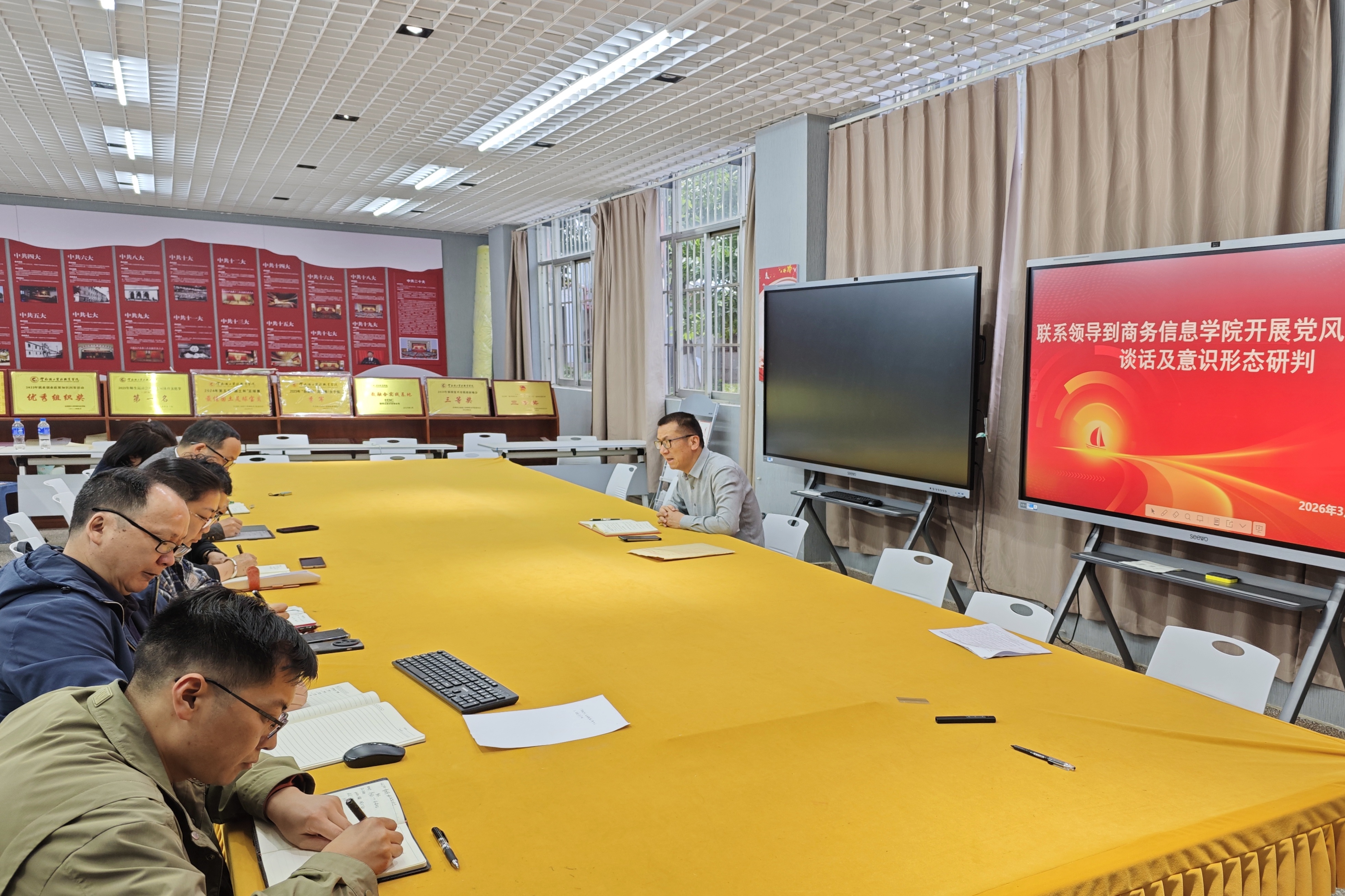 3月30日下午,寸建平副校长深入商务信息学院,就党风廉政建设及意识形态工作进行提醒谈话与风险研判,进一步推进学院党风廉政建设,强化意识形态工作责任制落实,学院党委委员、领导班子成员参与本次提醒谈话。