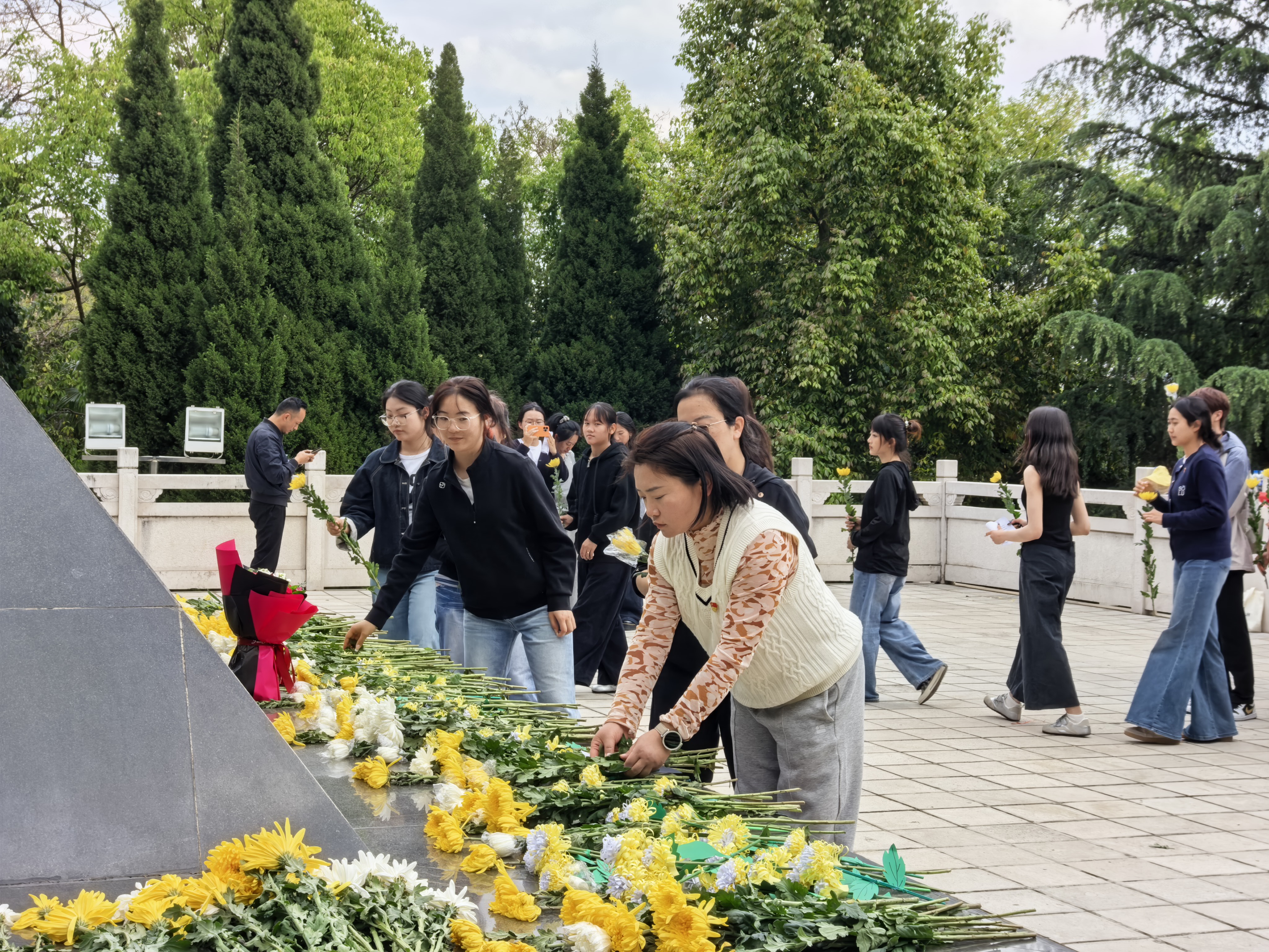 活动在庄重肃穆的氛围中拉开帷幕。全体人员整齐列队,面向烈士纪念碑肃立默哀,深切表达对革命先烈的崇高敬意与深切哀思。随后,师生代表依次向烈士墓敬献鲜花,以朴素而庄重的方式追思先烈功绩,告慰先烈英灵。在社区工作人员的讲解下,大家认真聆听革命先烈的英勇事迹,重温峥嵘岁月,感悟先烈们为国家独立、民族解放舍生忘死、无私奉献的崇高精神。