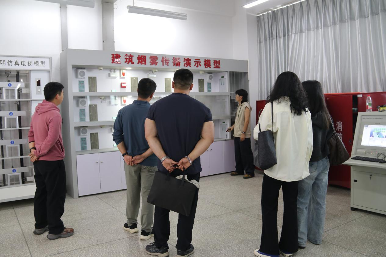 会后,保山职业学院一行实地参观了学院消防安全实体验馆。安管教研室主任冯溪阳和专业教师白磊现场讲解了实训室的设备配置、功能布局及教学应用情况。来访人员重点观摩了消防安全实操教学流程,对学院完善的实训条件和规范的教学管理给予了高度评价。