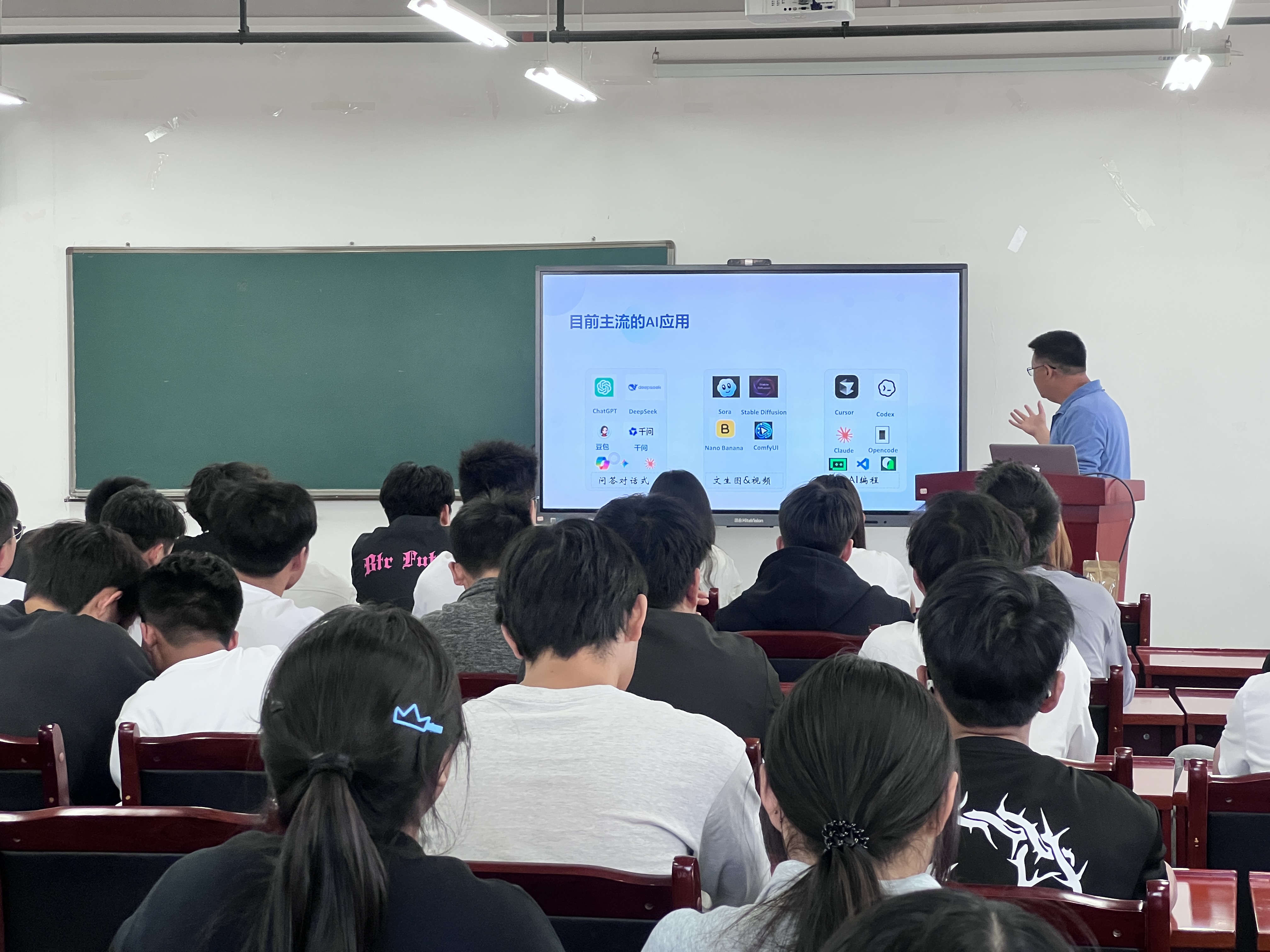 在“提示词工程”环节,赵老师重点讲解了高效使用AI的核心技巧——提示词三要素(角色、任务、要求),并现场演示如何通过精准指令让AI输出专业、实用的回答。同学们积极参与互动,针对AI在专业学习中的应用场景展开热烈讨论。