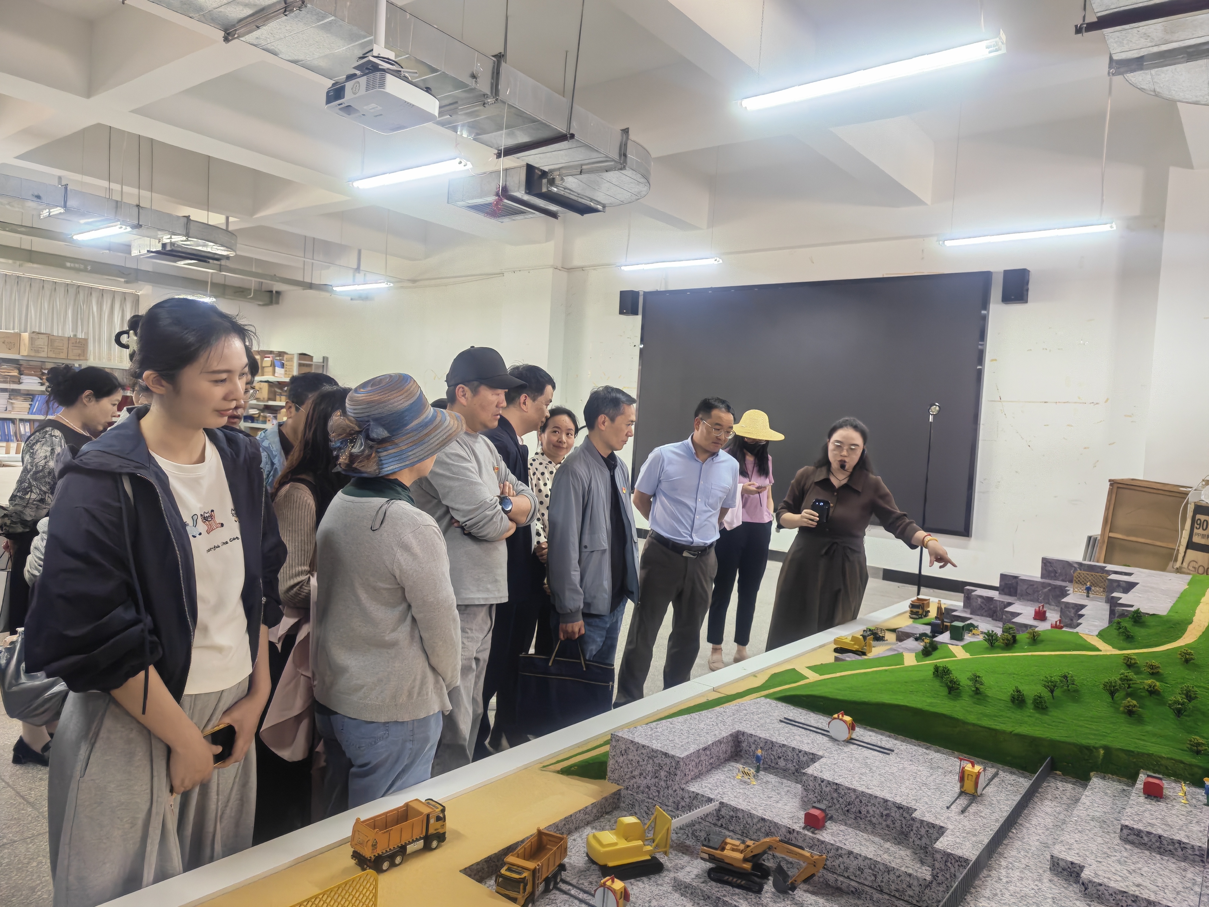 马克思主义学院全体教师参观了建设工程学院智慧建造与工业机器人综合实训室、建筑工程沙盘与模型实训室、建筑结构综合实训室、石材工程技术综合实训室等,深入了解了建设工程学院的实训条件与专业特色,为思政教育与专业教学的深度融合探寻了实践路径。